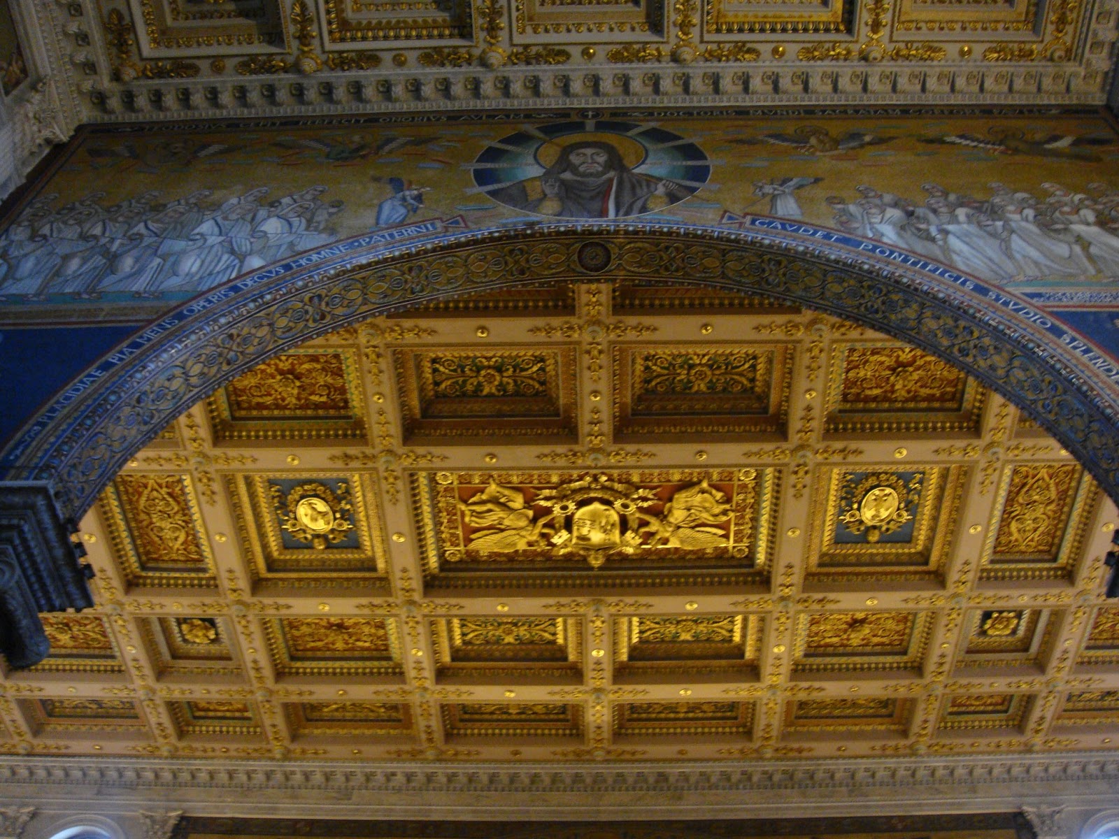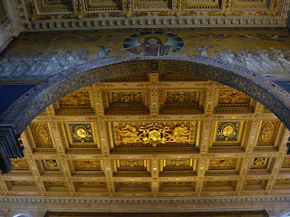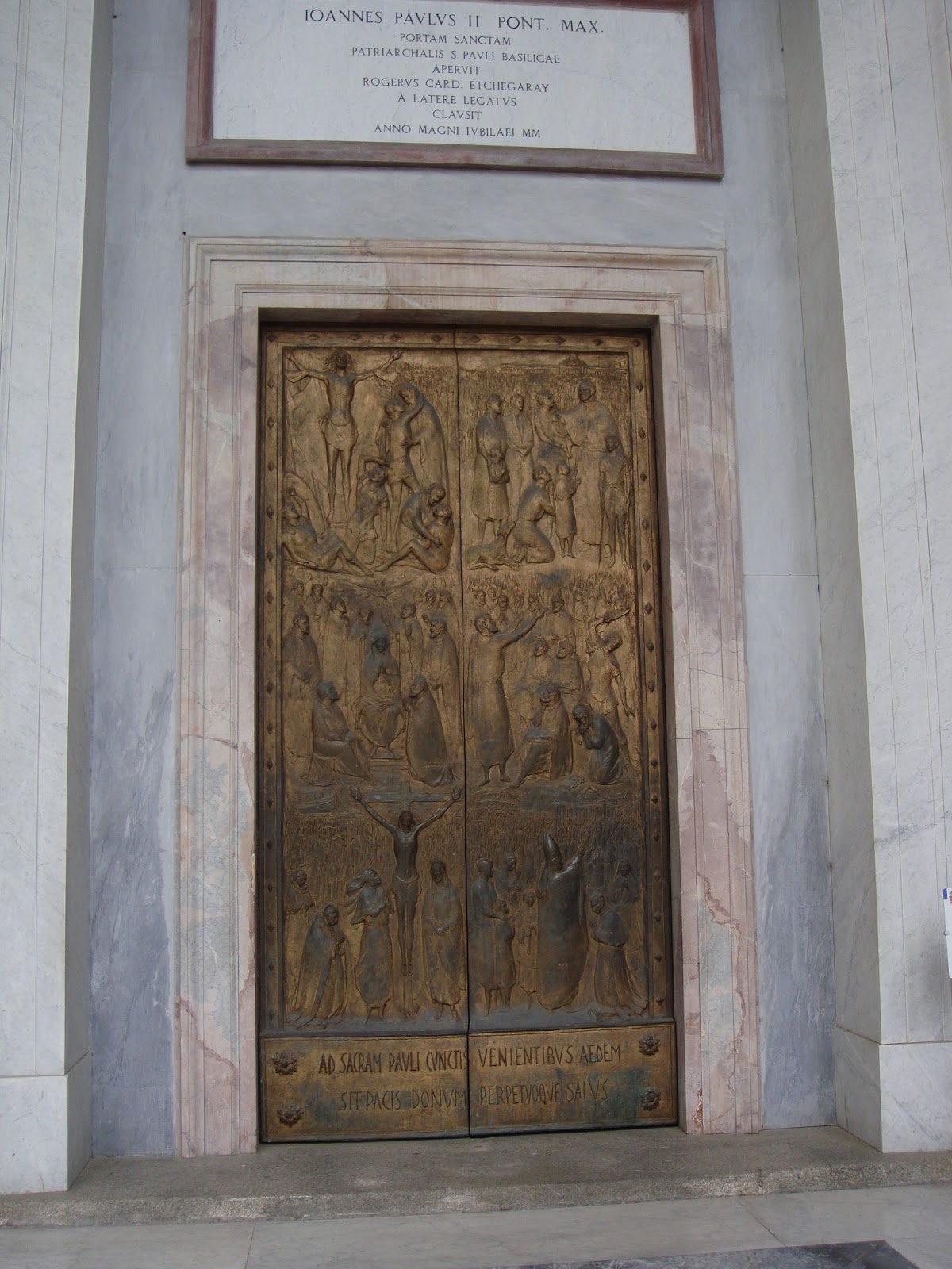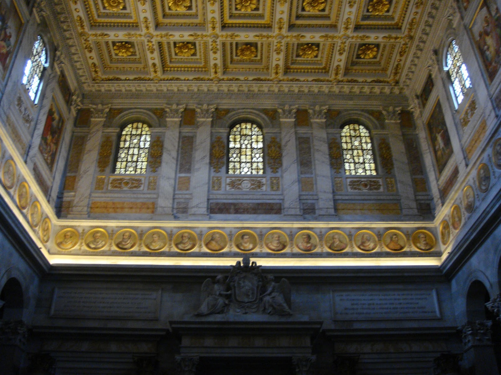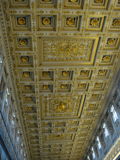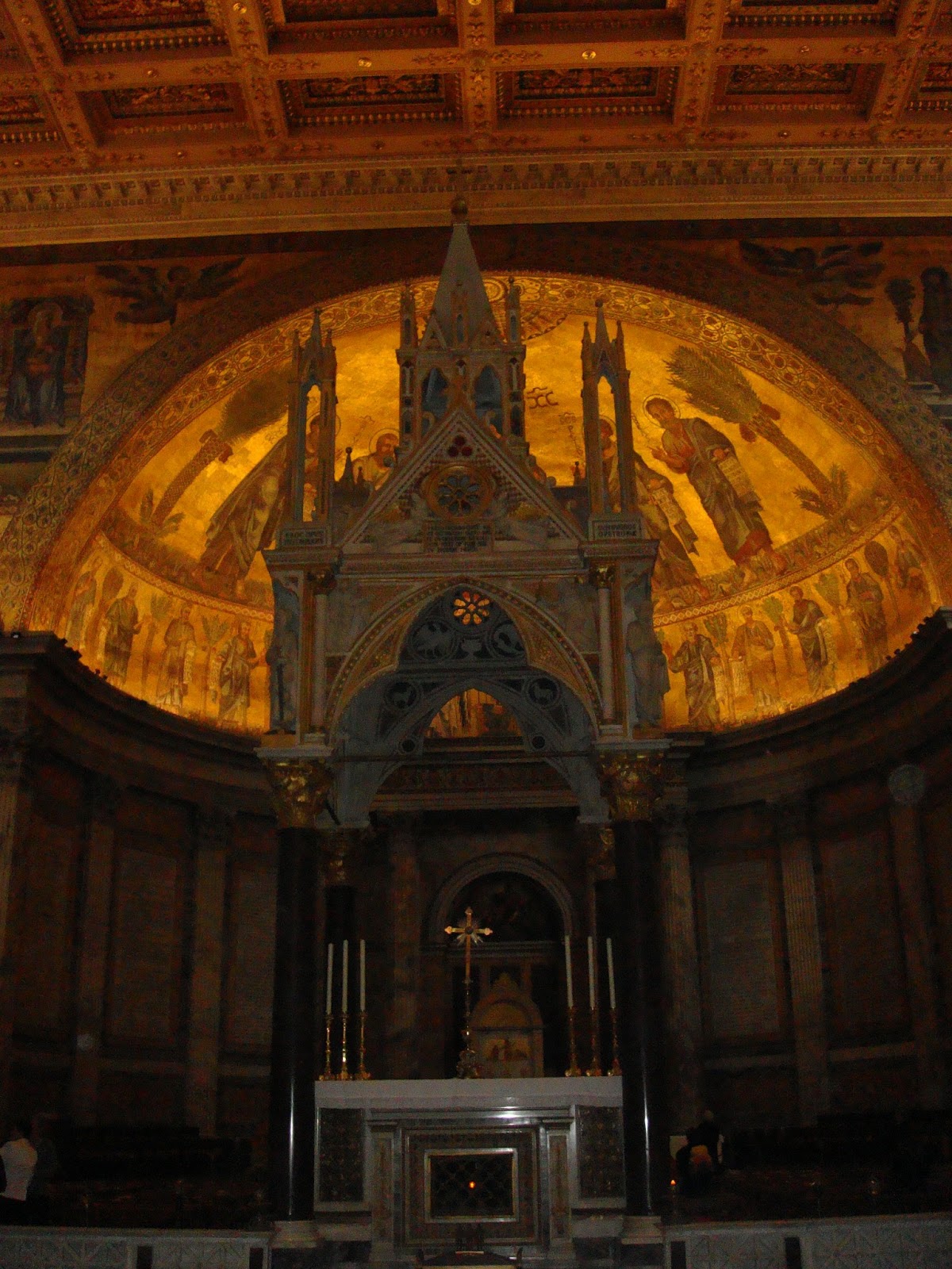 Revenind la San Paolo…Este wow din toate punctele de vedere.Primul cand am intrat:Wow,cate coloane,wow ,ce frumos e tavanul,wow,ce curat este!O serie intreaga de wow.Si intrand in basilica wow-ul nu mi-a mai iesit ca am ramas cu gura cascata.131 m de biserica ca lungime,65 m latime si o inaltime de aproximativ 30 m.Aici din nou coloane,mai exact 2 randuri de coloane cu un total de 80 de coloane.Wow!Paream niste furnicute in imensitatea care domnea.Inaintand,descoperim altarul numit ,,Ciborio” care este ridicat deasupra mormantului Sfantului Petru din care se poate vedea doar o mica parte.Aici se afla si ,,confessio” locul din fata mormantului si unde te poti ruga.Chiar deasupra ,,confessio-ului” se afla lanturile care le-a purtat Sfantul Pavel in timpul martiriului,protejate de un geam.