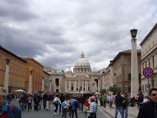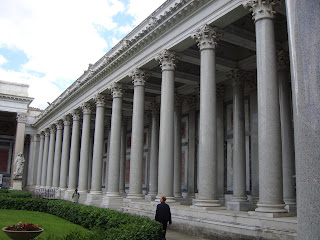 Am descoperit aceasta basilica in drumul meu spre Ostia Antica  si am zis ca trebuie sa vin sa o vad.M-a atras numarul foarte mare de coloane,ca asta iese in evidenta prima data.Si am fost duminica trecuta(26 mai).Desi,plecasem cu gandul sa urcam pe cupola Catedralei San Pietro.Ajunsi acolo,o mare de oameni ne-a intampinat.Nu stiu care a fost motivul sau poate din cauza ca intrarea la Musei Vaticani a fost gratis in acea duminica,am zis sa o lasam pe alta data ca nu plecam prea curand din Roma.