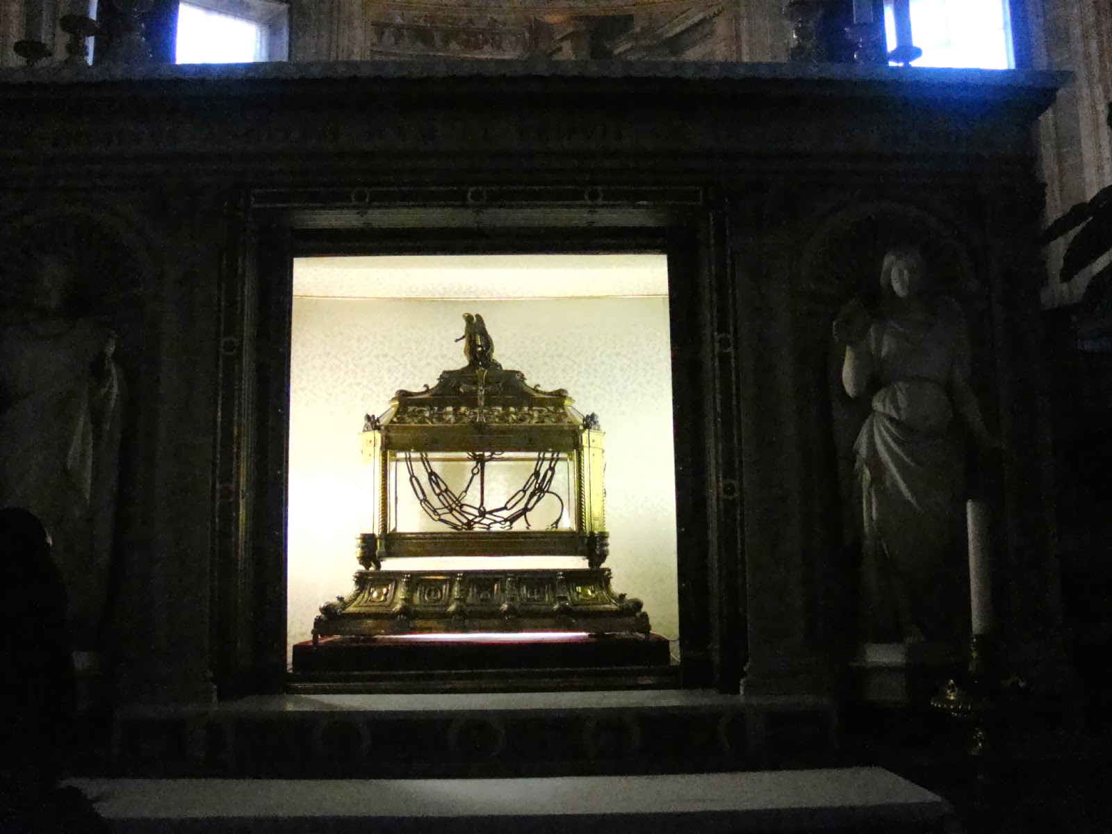 Relicvarul din bronz aurit care adăposteşte lanţurile se află sub altarul major şi datează din secolul XIX-lea.