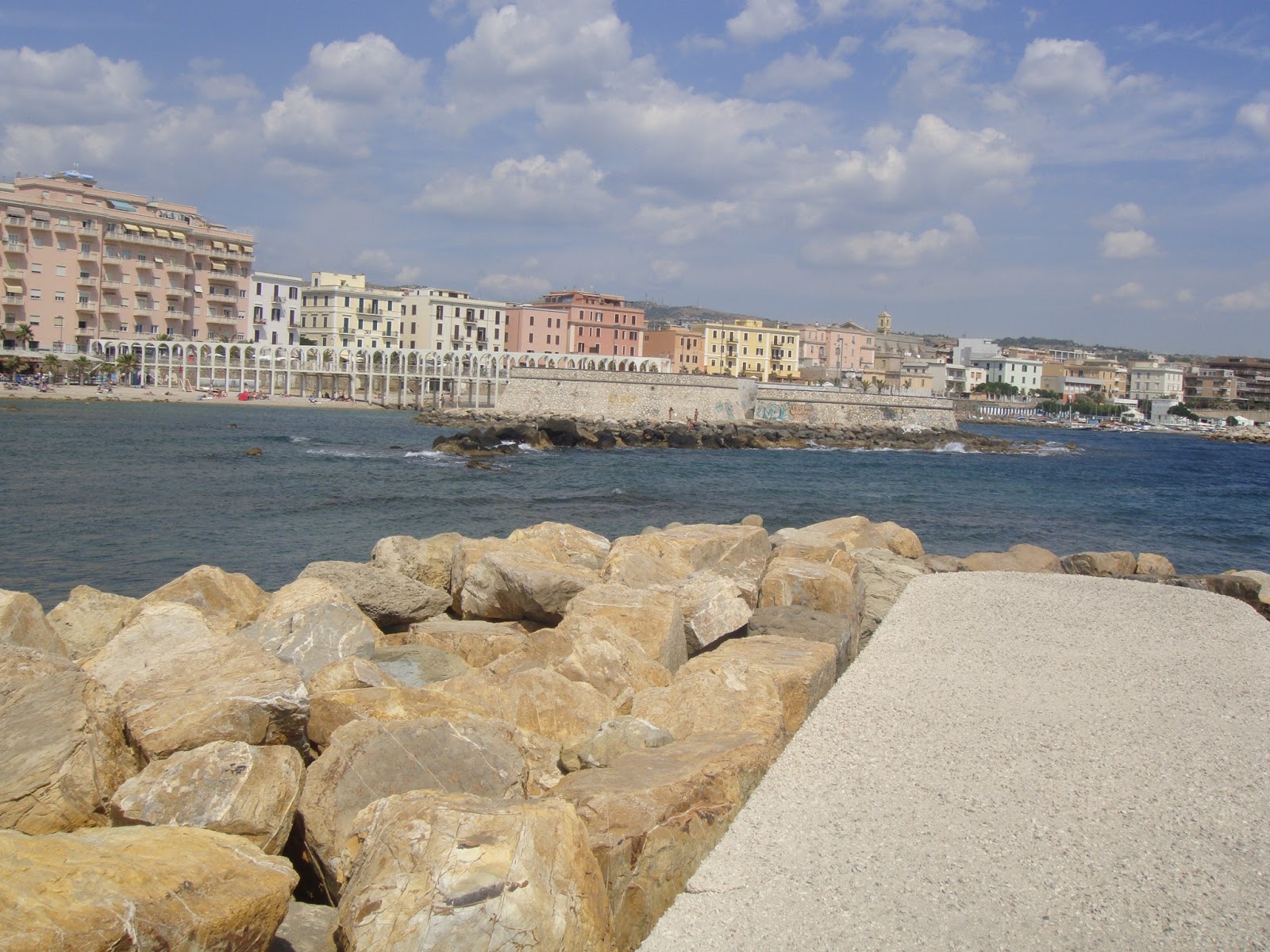 Deşi erau destule obiective turistice/clădiri de vizitat într-o zi,prezenţa nostră acolo a fost strict non turistică.Paşii (de fapt maşina) ne-au purtat în Civitavecchia în căutarea unei mări cu apa curată deoarece marea de la Ostia poate fi oricum,numai curată nu.Şi am găsit-o.Cât de curată şi limpede este Marea Tirenină aici!Un albastru intens,pur.Singurul defect este lipsa nisipului,plaja fiind constituită din pietre şi pietricele.Povestea cică se schimbă în partea nordică a oraşului unde plajele sunt cu nisip.Totuşi plaja cu pietricele nu este tocmai o problemă atâta timp cât apa este curată.Îti poţi închiria un sezlong cu doar 5,00 Euro.Noi am avut chiar şi un bonus de la Mama Natură şi anume un vânt puternic şi rece că la ora 17,00 stăteam îmbrăcaţi la soare.