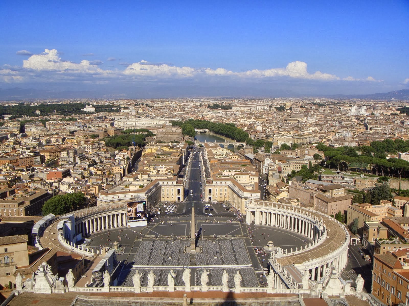 • Cupola San Pietro.Trebuie să urci 551 de trepte şi vei admira o Romă la 360° cu imensa Piazza San Pietro,monumente-Castel Sant’Angelo,Vittoriano,grădinile Vaticanului,Tibru.Buget:5,00 E pe scări,7,00E cu liftul.De reţinut,liftul nu vă duce până la destinaţie ci până la baza cupolei şi apoi 320 de trepte dintr-un total de 551.