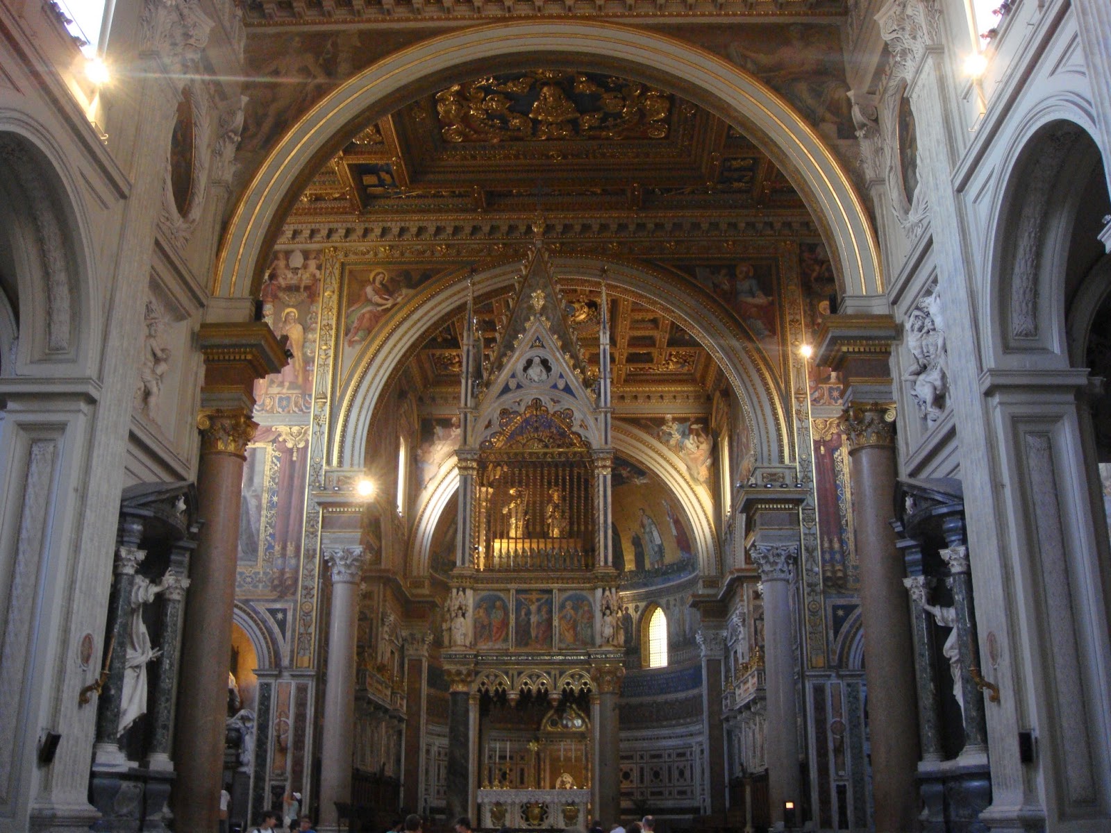 În naos sunt aliniate statuile Sfinţilor Apostoli din marmură gri opere ale mai multor artişti dintre care Camillo Rusconi,Pierre Legros,Angelo de Rossi.În centru se află Altarul Papal sub care este aşezată statuia lui Ioan Botezătorul şi mormântul Papei Martino V.De asemeni Altarul Papal adăposteşte şi craniile Sfinţilor Petru şi Pavel.
